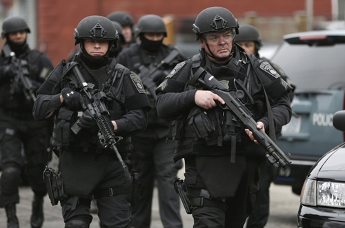 правоохранители и военные проверяют дом за домом в Уотертаун, Кембридже, прочесывают другие пригороды Бостона в поисках одного из подозреваемых подрывников бостонского марафона - Джохара Царнаева. Его старший брат Тамерлан, также подозреваемый в бостонском взрыве, погиб от пуль полицейских накануне во время преследования, пытаясь скрыться на угнанном авто, используя при этом взрывчатку и огнестрельное оружие.