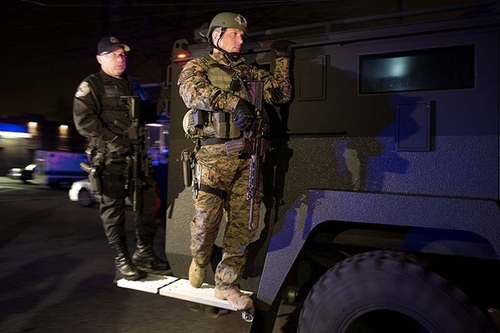 Полицейские и военные, которые ищут подозреваемого, вооруженные до зубов и носят защитное снаряжение. Они опасаются, что беглец имеет себе взрывчатку с детонатором, и другое огнестрельное оружие, а также может передвигаться на угнанном автомобиле и общаться с другими людьми в соцсетях через свой лэп-топ.
