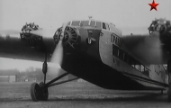 Машину решили выпустить к юбилею, 40-летию литературной деятельности Максима Горького. Построенный самолет, соответственно, так и назвали «Максим Горький». В июне 1934 года летчик-испытатель Михаил Громов выполнил на нём первый полет, а второй - уже над Красной Площадью во время встречи Челюскинцев. В августе того же года самолет «Максим Горький» передали в агит-эскадрилью имени Максима Горького. На его борту находилось разнообразное оборудование и средства агитации. Громкоговорящая установка «Голос с неба», несколько радиостанций, киноустановка, типография, электростанция, пневмопочта, телефонная станция на 16 номеров. При необходимости машину можно было переделать в 72-местную пассажирскую. В то время это был самый большой в мире самолет. Размах крыла 8-моторного гиганта составлял шестьдесят три метра, а вес - 42 тонны. Увы, этот колосс летал меньше года. 18-го мая 1935 года он упал в районе поселка Сокол в Москве после того, как в крыло врезался сопровождавший его истребитель.