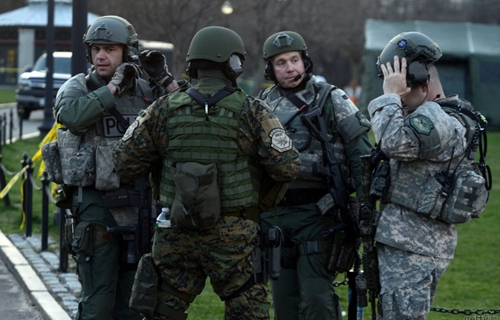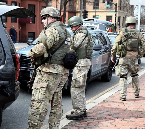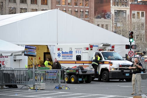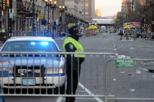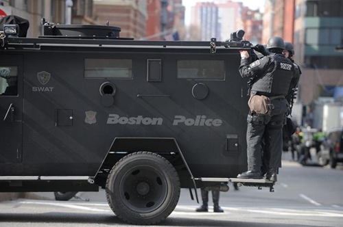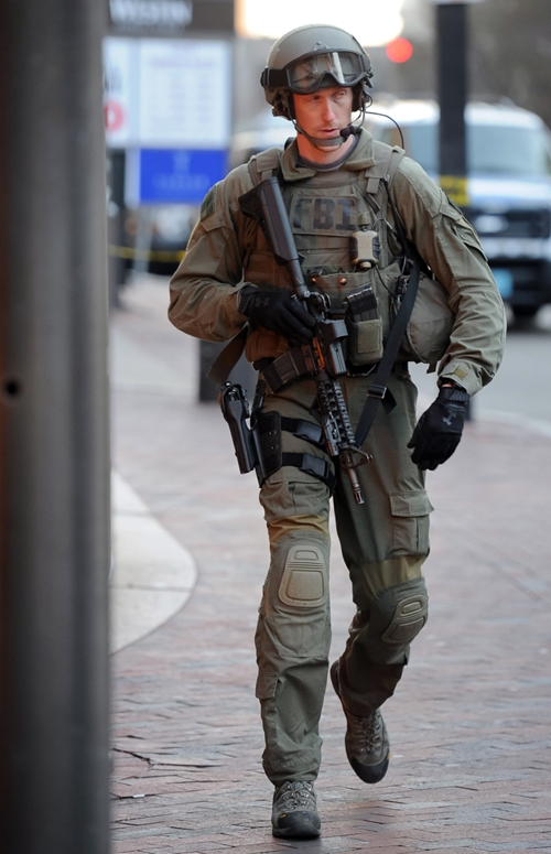 Фотографии подразделений спецназа Бостона, штат Массачусетс, прибывающие и работающие на улицах Stuart Street и Dartmouth Street, после двух взрывов самодельных взрывчатых устройств во время Бостонского марафона 15 апреля.