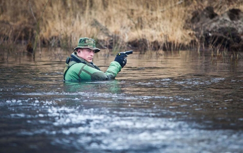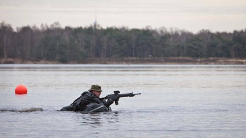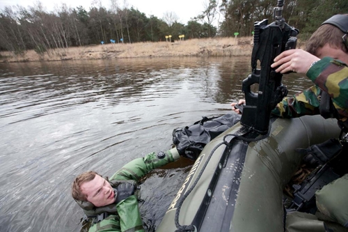 Военнослужащие вооруженных сил Нидерландов во время учений в Бельгии целью которых, было отрабатывание навыков ведения огня из оружия в воде.