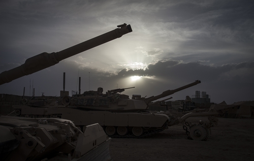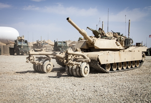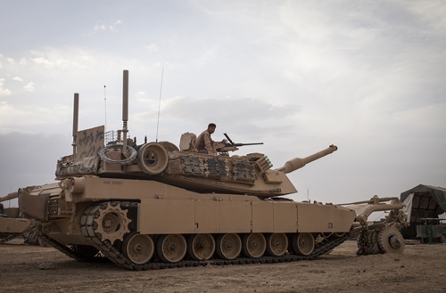 Танки M1A1 Abrams из первого танкового батальона корпуса морской пехоты США прибывают в лагерь Shir Ghazay (провинция Гильменд, Афганистан) для проведения технических проверок и ремонта.