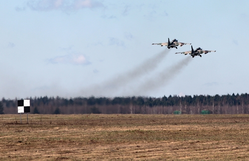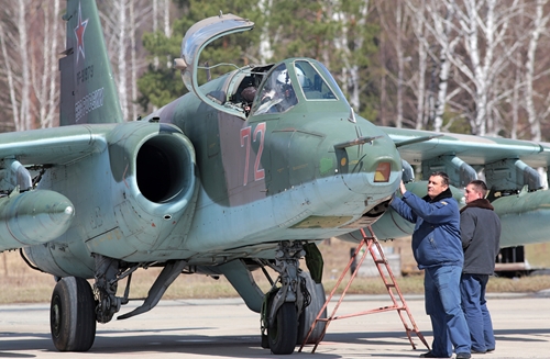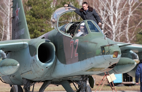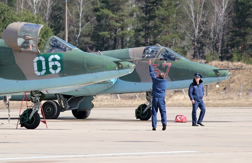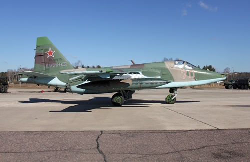 Фотографии штурмовиков Су-25 ("Грач") ВВС России на военном аэродроме Кубинка, где пилоты вели подготовку к предстоящему Параду.