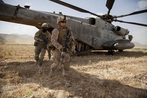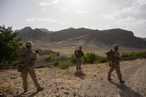 Солдаты 2го батальона морской пехоты США совместно с силовиками АНА, во время боевой операции "Nightmare" в Афганистане, 6 июня 2013 года.