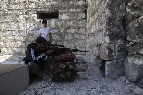 Подборка фотографий сирийских боевиков, из группы под названием "Мученики Аль-Аббас", в Алеппо (крупнейший город Сирии), 11 июня 2013 года.