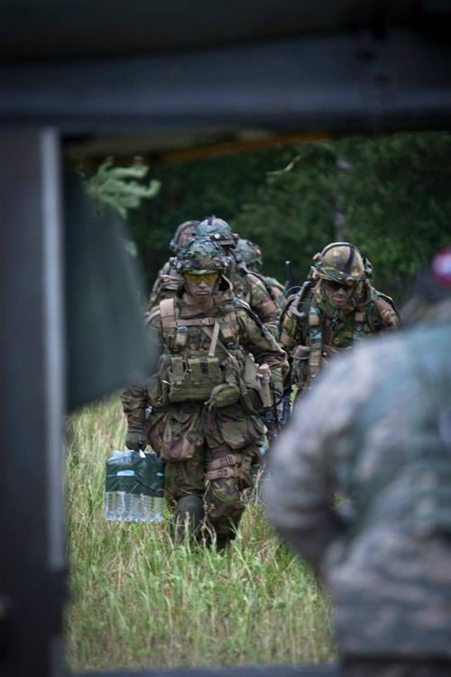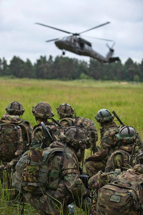 Военнослужащие 11ой воздушно-десантной бригады Голландских вооруженных сил во время учений в Германии, 16-17 июня 2013 года. В маневрах принимали участие многоцелевые вертолеты UH-60 "Блэк Хоук" ВВС США.