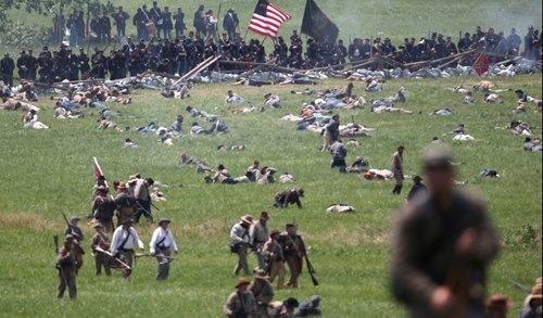 Предлагаем вашему вниманию фотоподборку реконструкции эпизода Гражданской войны в США, в которой принимали участие свыше 8000 человек. На фото можно увидеть реконструкцию сражения между США и КША (Конфедеративные Штаты Америки), проходившей 1-3 июля 1863 года, за время этого сражения воюющие стороны за три дня потеряли свыше 51000 солдат.
