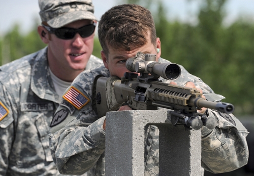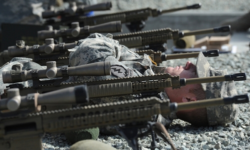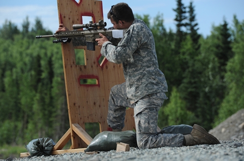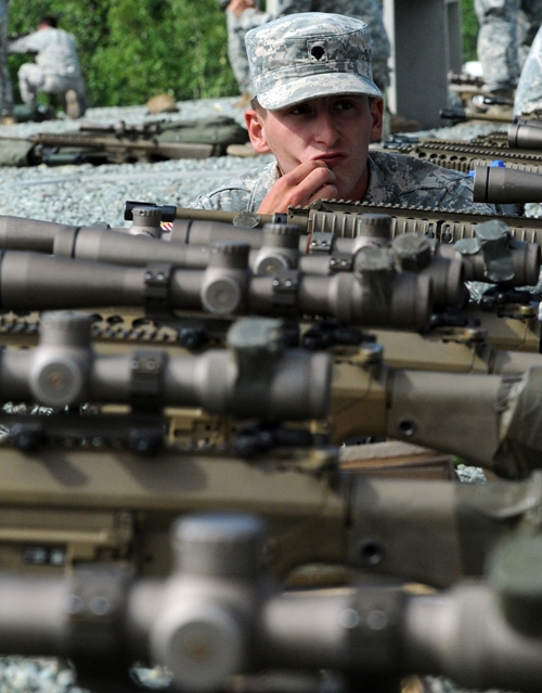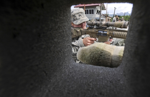 Военнослужащие армии США из 3го батальона 25ой пехотной дивизии в снайперской школе вооруженных сил Соединенных Штатов. Здесь солдаты проходят обучение и оттачивают свои навыки в стрельбе из снайперских винтовок, по обнаружению целей, методике выбора позиций и т.д.