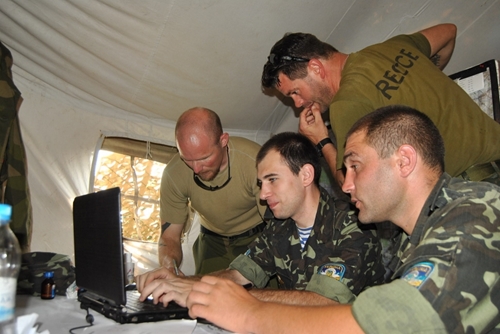 Новая подборка фотографий с американо-украинских тактических учений "Репид Трайдент-2013", "Славянское Содружество-2013" и других занятий по боевой подготовки украинской армии. На фото можно увидеть как солдаты прыгали с парашютом, сопровождали колонны, форсировали водную преграду и многое другое.