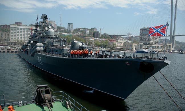 Большой десантный корабль "Ослябя", эсминец "Быстрый" и морской буксир "Калар" приняли участие в "Походе памяти" посвященном Дню Победы, 200-летию со дня рождения адмирала Невельского и 282-й годовщине ТОФ.