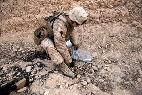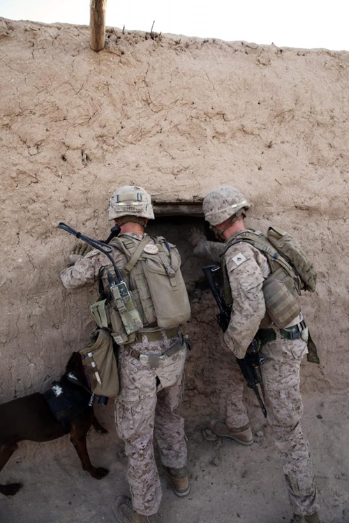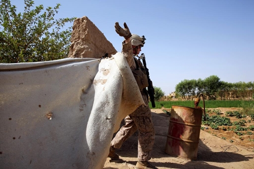 Солдаты корпуса морской пехоты США во время патрулирования в провинции Гильменд (Афганистан, 29 июля 2013 год), осуществляют осмотр и зачистку местности от оружия и самодельных взрывчатых устройств.