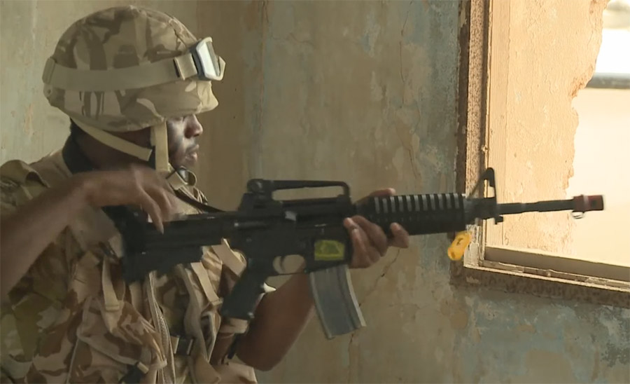 Имитациятеррористической атаки на подразделения морской пехоты США во время учений "Eagle Resolve 2013". Перед морпехами была поставлена задача, зачистить все здания от условных террористов, с применением всех имеющийся спецсредств.