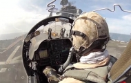 Видео-кадры из кабины пилота самолета AV-8B «Харриер» приписанного к 26му экспедиционному отряду корпуса морской пехоты США. На видео можно увидеть тренировочный полет, а именно взлет, полет и вертикальную посадку на авианосец ВМС США.